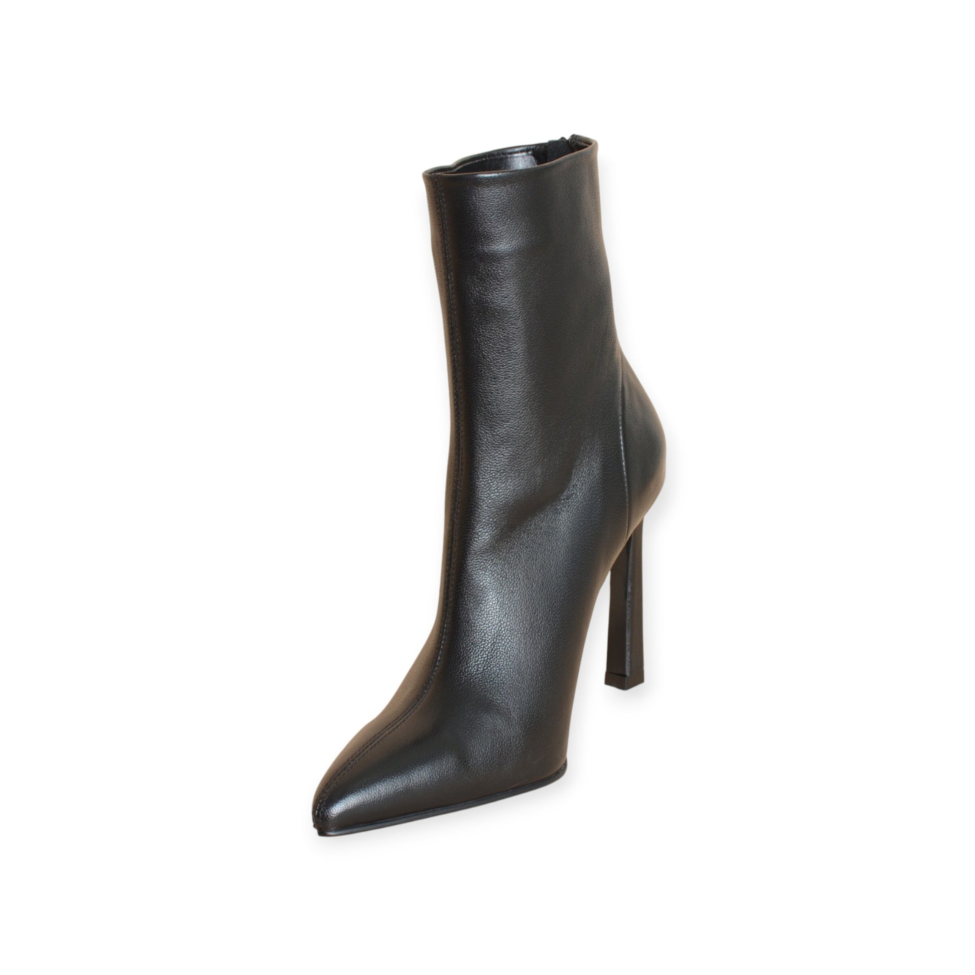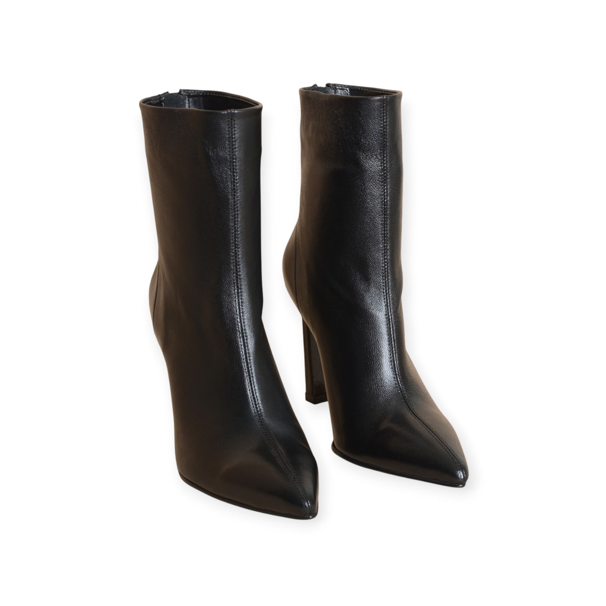 The Ingrid Black Ankle Boot is a timeless expression of strength and sophistication. Expertly handcrafted from premium genuine leather, it features a sleek, form-fitting silhouette and a refined stiletto heel that enhances your confidence with every stride.